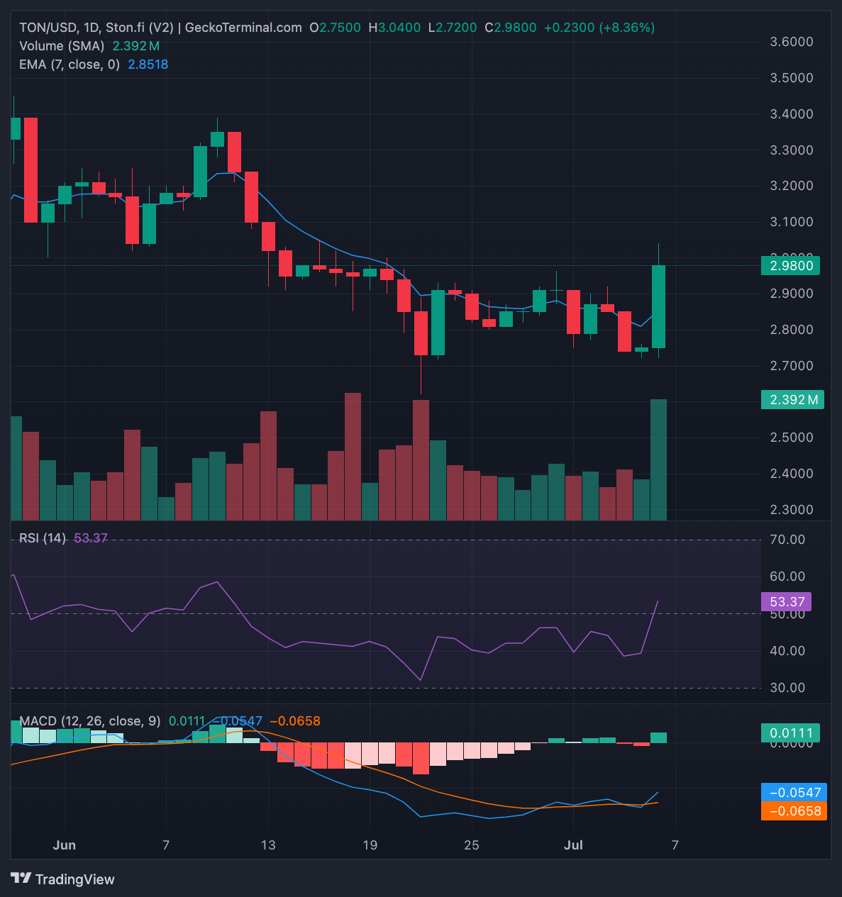 اليوم (7) في التداولات الآسيوية، واصل Toncoin (TON) اتجاهه الصاعد الذي بدأ في عطلة نهاية الأسبوع، حيث سجل سعره 2.83 دولار ليظل قوياً. أعلنت TON عن خطوة كبيرة، وهي إطلاق برنامج إقامة قائم على البلوكتشين في الإمارات العربية المتحدة (UAE)، مما أدى إلى ارتفاع كبير في سعر العملة. هذه الخطوة لم تعزز فقط من مكانة TON في سوق الأصول الرقمية، بل فتحت أيضاً فرصاً جديدة للمستثمرين الذين يسعون للحصول على تأشيرات طويلة الأجل في الإمارات.