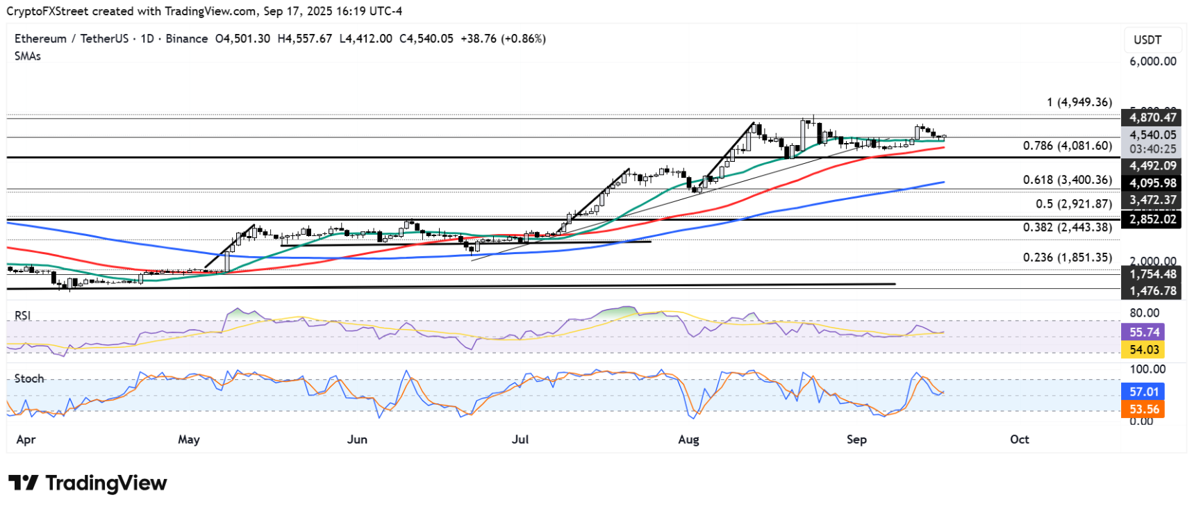 ! الرسم البياني اليومي ETH / USDT