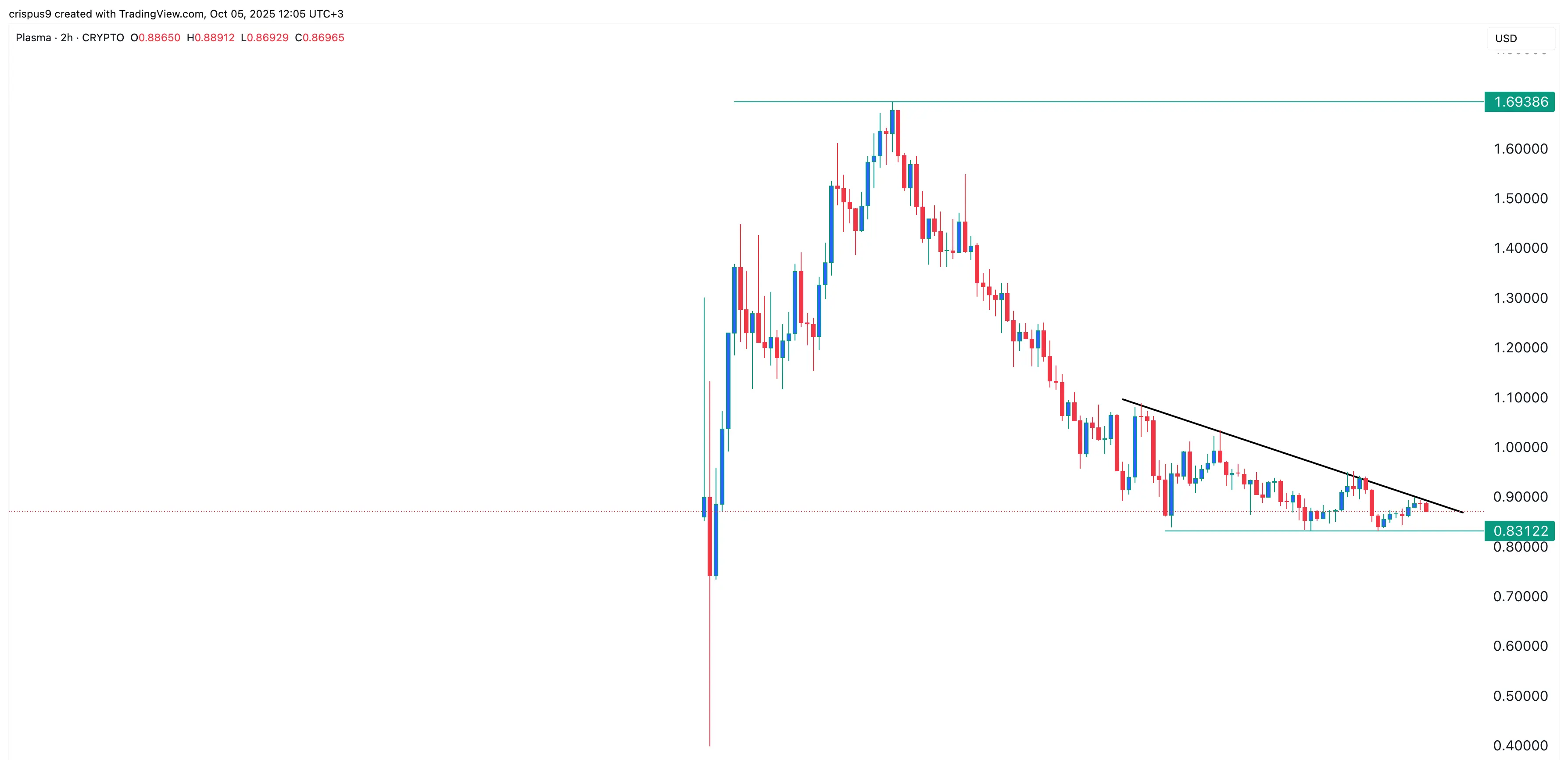 تظهر الرسم البياني لمدة ساعتين أن سعر Plasma بلغ أعلى مستوى له عند 1.6938 دولار بعد عملية الإطلاق. ثم انخفض ووصل إلى أدنى مستوى له عند 0.8312 دولار.