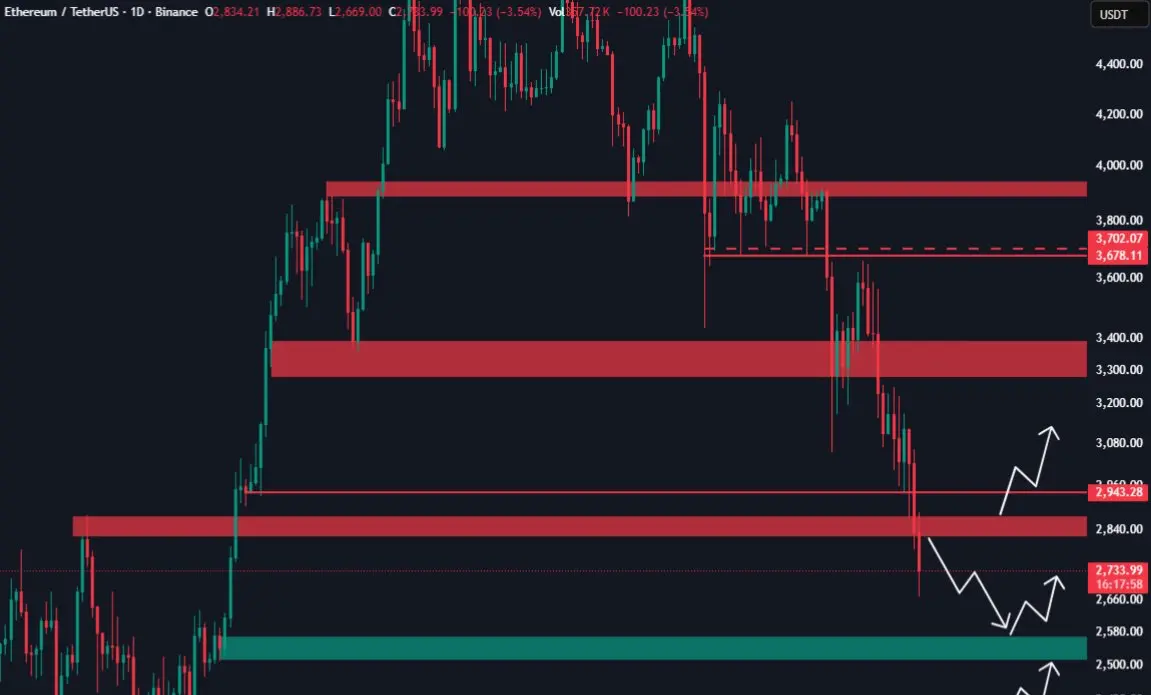 محلل يؤكد أن على الإيثريوم استعادة مستوى $2.8K أو المخاطرة بالانزلاق نحو منطقة $2.5K.