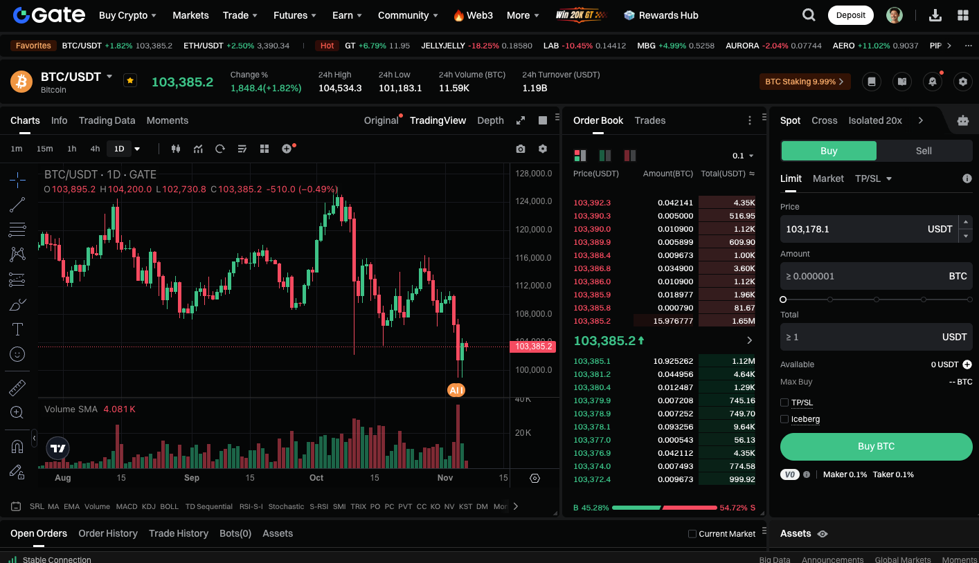 Puedes operar BTC al contado aquí: https://www.gate.com/trade/BTC_USDT