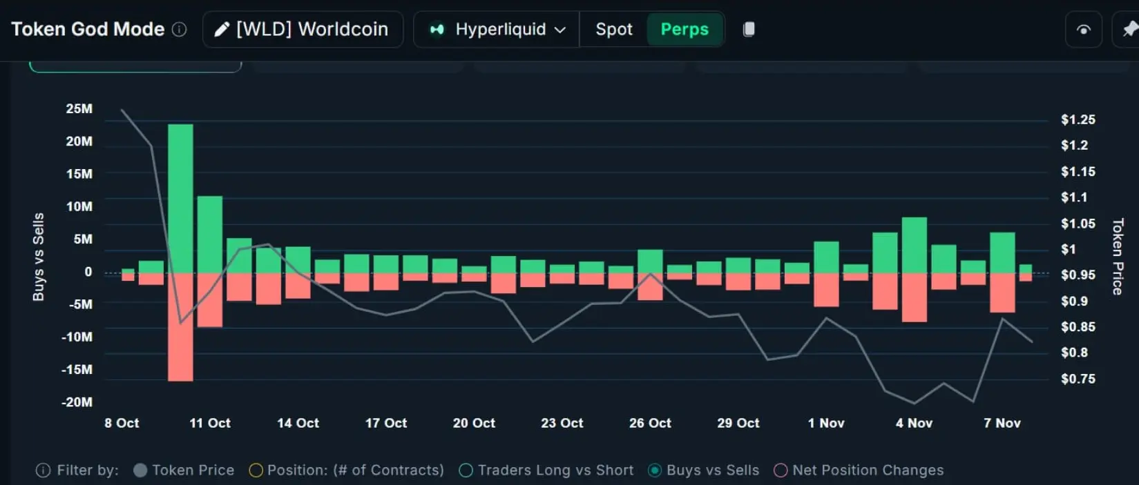 Fuente: CryptoQuantEs notable que, en el mercado de contratos perpetuos (Perpetuals) de Hyperliquid, los toros parecen dominar claramente. Los datos de Nansen muestran que el volumen de contratos de compra (Buy Contracts) supera al de contratos de venta (Sell Contracts).