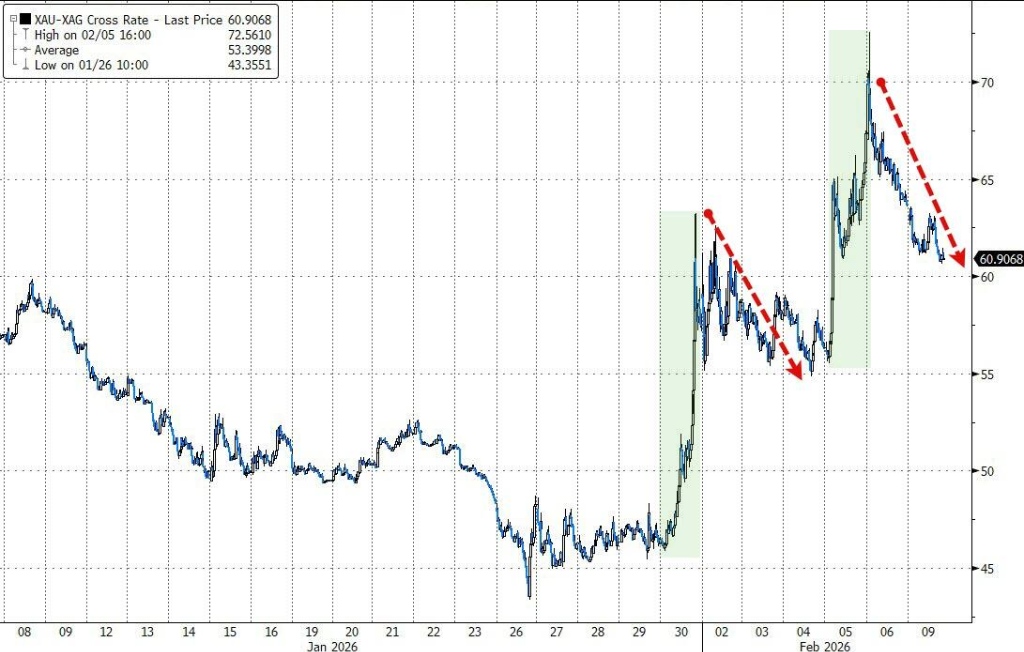La plata ha tenido dos días consecutivos de mejor rendimiento que el oro, recuperando su fortaleza relativa tras que la relación oro/plata alcanzara un máximo de dos meses en 70 veces la semana pasada.