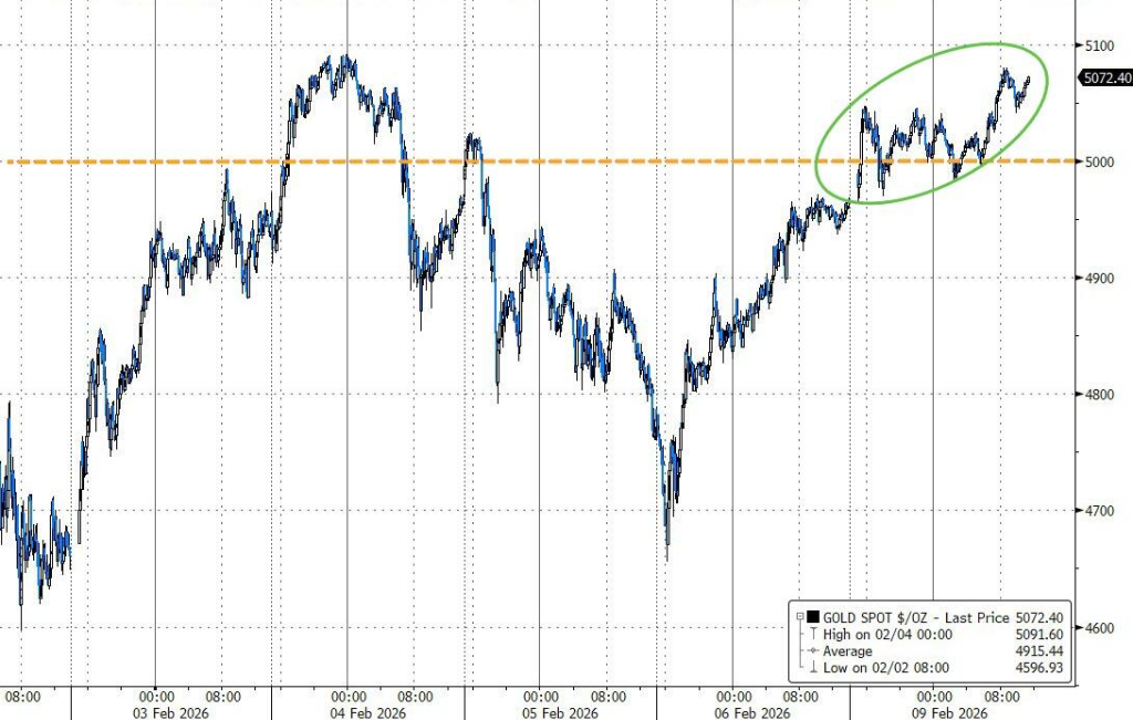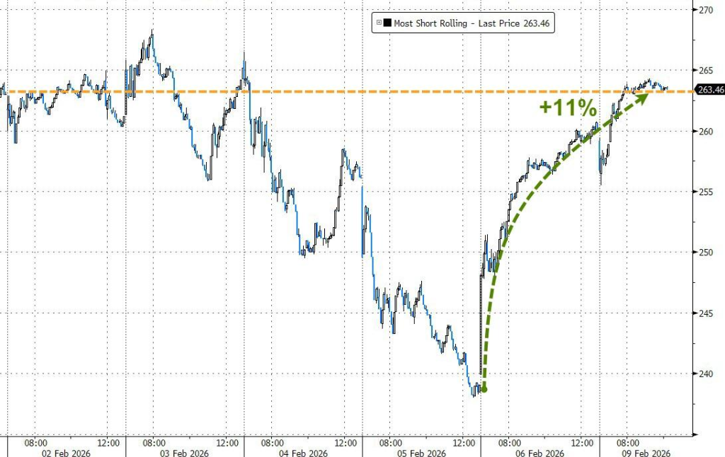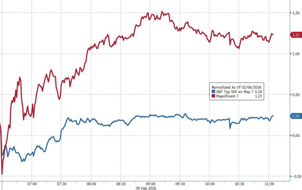 Las acciones estadounidenses continuaron con el impulso de rebote del viernes pasado, especialmente en el sector tecnológico. Los inversores parecen haber considerado la caída abrupta de la semana pasada, provocada por preocupaciones disruptivas sobre la IA, como una “sobre reacción” y una oportunidad de compra, lo que impulsó aún más al mercado a la alza. Antes de la publicación de informes económicos clave, incluyendo datos de empleo e inflación, el sentimiento del mercado era optimista, y la caída del dólar estadounidense proporcionó un apoyo adicional a los activos de riesgo y al oro.