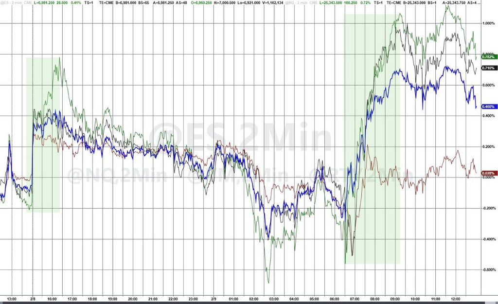 A pesar de que las acciones de software en EE. UU., lideradas por Oracle, continúan recuperándose, todavía están muy por debajo de los máximos de apertura de la semana pasada. Se analiza que el mercado está esperando datos macroeconómicos intensivos esta semana, incluyendo el informe de empleo no agrícola de enero, que se ha retrasado, y los últimos datos del IPC. Esto hace que los operadores prefieran mantener exposición al riesgo antes de que los datos se publiquen.