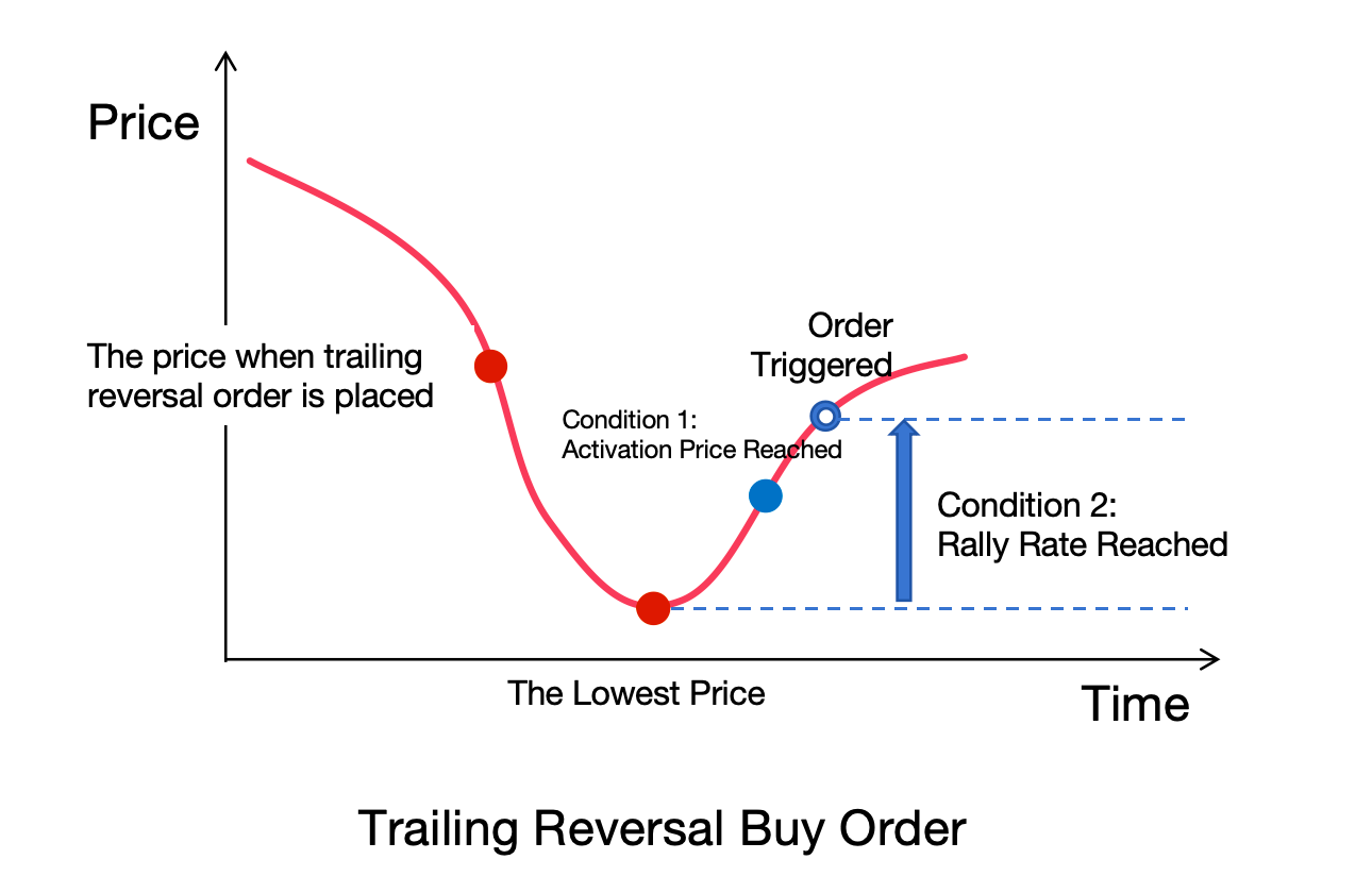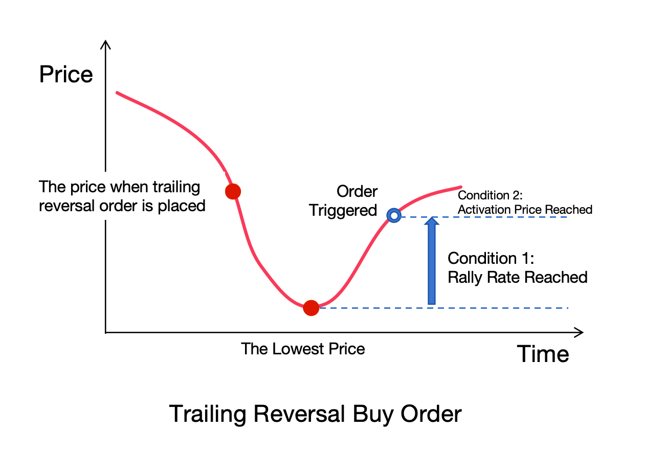 買入時,需要滿足市場價格>=激活價格,激活價格>=最低價,且行情反彈幅度>=設定回調幅度。如下圖所示: