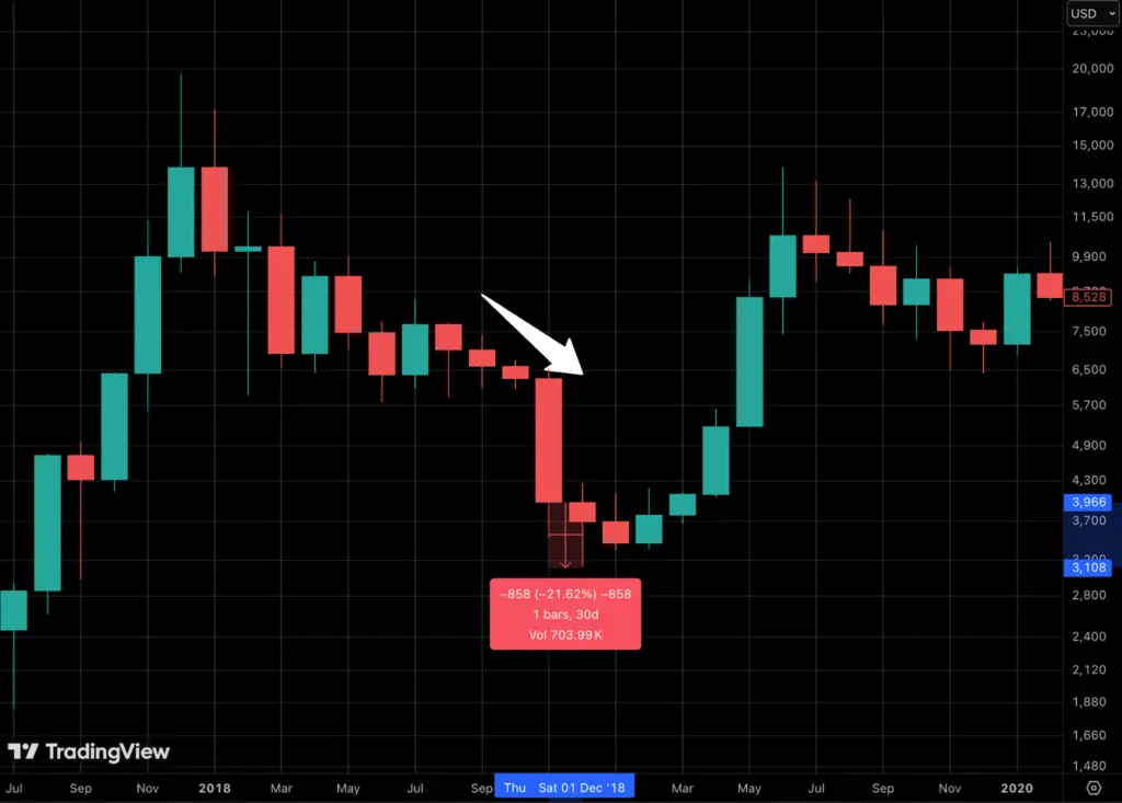Yang menonjol, bagaimanapun, adalah betapa jarang Bitcoin mencetak empat lilin merah bulan berturut-turut. Yang menarik, terakhir kali ini terjadi pada 2018, Bitcoin tidak mengakhiri rangkaian bulan merah dengan yang keempat. Sebaliknya, Bitcoin melanjutkan penurunan sekitar ~20% lagi dengan dua bulan merah tambahan. Pengaturan serupa terjadi pada 2015, di mana kerugian akhirnya mendekati 60% setelah rangkaian empat bulan merah