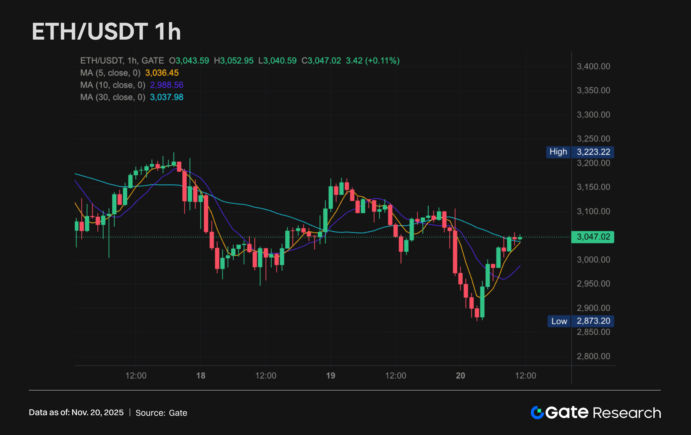 ETHは大きく変動し、今日の深夜には一時約2,900ドルまで下落した後、サポートを受けて明らかな反発を見せ、現在の価格は約3,040ドルです。移動平均線の構造では、MA5がMA10を上回り、MA30に近づいており、短期的なトレンドは修復されていますが、上方は依然として3,100–3,150ドルの範囲の段階的な圧力に制約されています。MACDから見ると、指標線が金叉を形成したばかりで、赤いバーが再び拡大しており、強気のエネルギーが回復していることを示していますが、全体的なボリュームは顕著に拡大していないため、短期的には依然として修復的な反発の段階にあります。