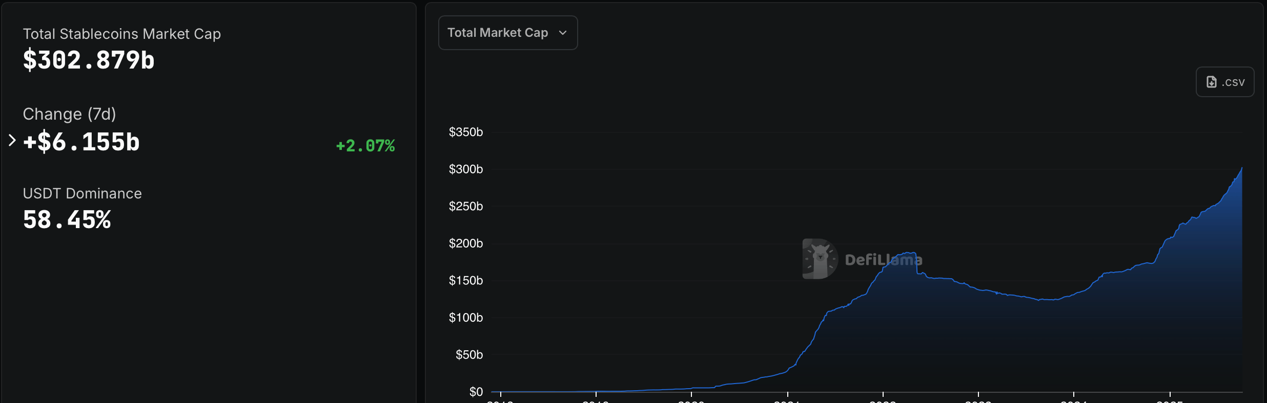 安定コイン市場は$300 億のマイルストーンを超えましたが、そこで止まりませんでした。過去1週間だけでも、このセクターはさらに61.55億ドル膨らみました。