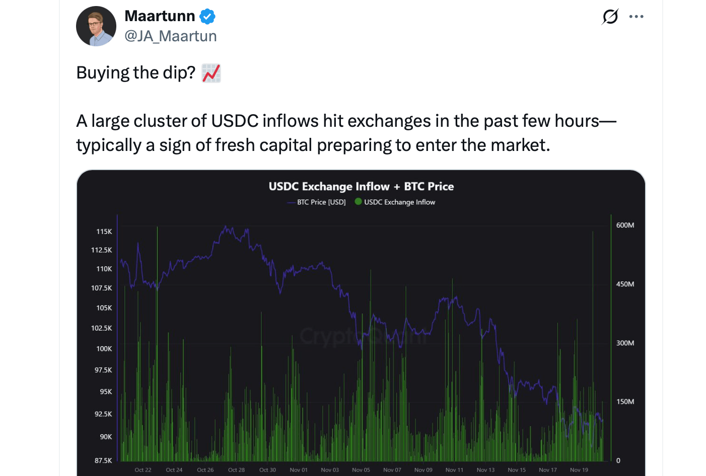 回復はまだ可能ですか? Cryptoquantのデータは、USDCの流入、長期保有者の蓄積、ETFの需要がすべて、強制的な売却が終了した後の改善した状況を示していることを示しています。