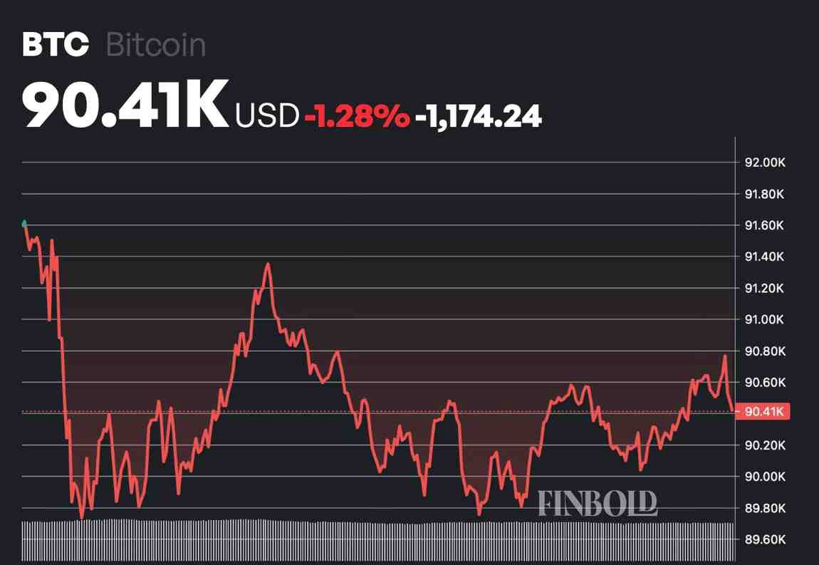 実際、「デジタルゴールド」は記事執筆時点で$90,410で取引されており、1日で1.28%下落、ベアフラッグパターンが確認されており$70,000付近への調整リスクが高まっています。