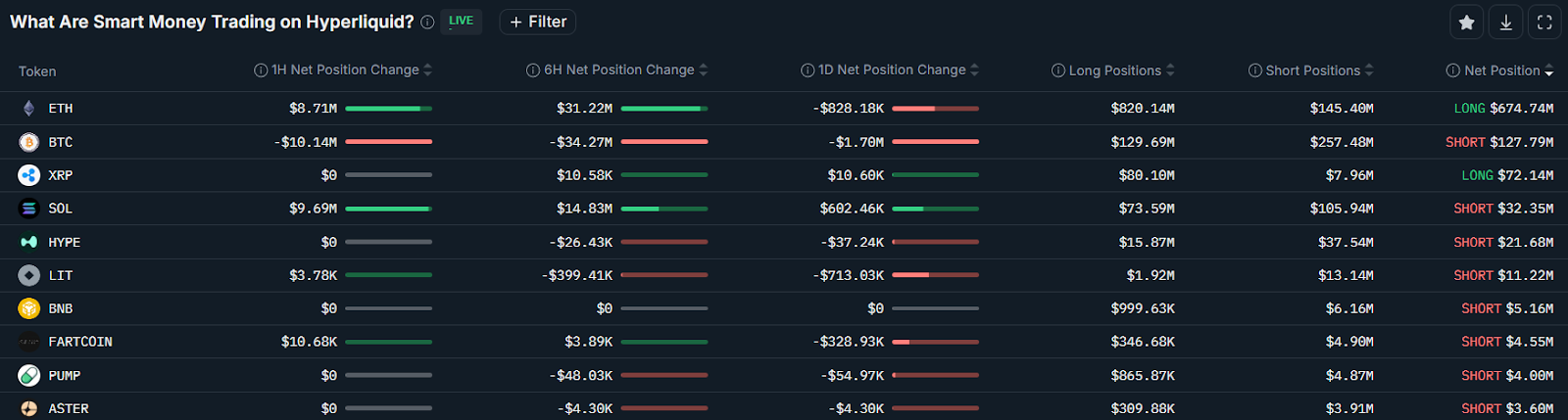 それでも、スマートマネーはイーサリアム(ETH)の価格で$674 百万ドルのネットロング、XRP(XRP)についても$72 百万ドルのネットロングを維持しており、これらのトークンのさらなる上昇期待を示しています。