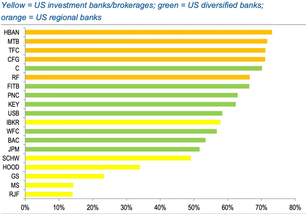 預金基盤の縮小に加え、アナリストは、現実世界のトークン化資産(RWA)の増加に伴う非金利収入への脅威も指摘している。