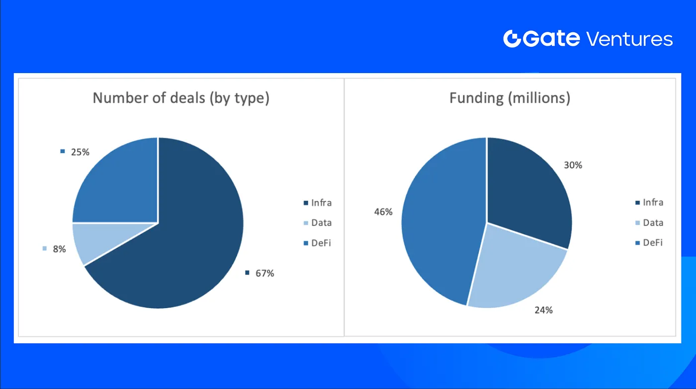 先週は合計12件のベンチャーキャピタル取引が成立し、そのうち8件はインフラ(Infra)分野、3件はDeFi分野、1件はデータ分野でした。
