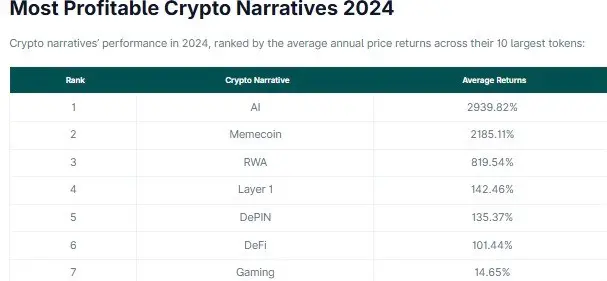 In 2024, the most profitable crypto narratives were AI, memecoins, and RWA. As such, the expected return of the global retail traders will benefit the highly undervalued institutional-backed crypto projects, led by memecoins and RWA.