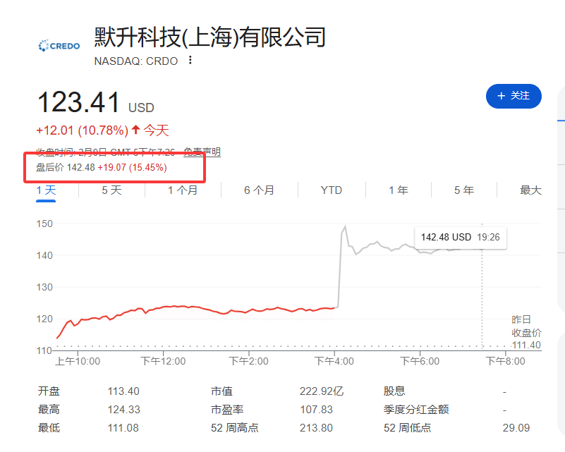 Stimulated by this news, Credo’s stock rose 10.91% during regular trading on Monday, closing at a high. After the earnings preview was released, the stock continued to surge in after-hours trading, with gains exceeding 15% at one point.