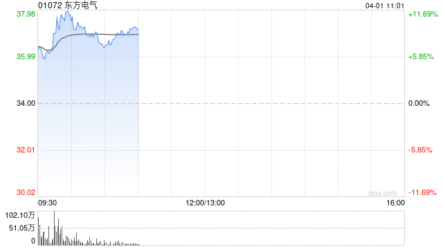 Dongfang Electric (01072) surged more than 11% after the close, and as of the time of publication, the stock was up 9.65%, trading at HK$37.28. Turnover was HK$464 million.