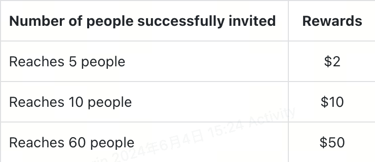 Os usuários compartilham este evento com amigos através do link de compartilhamento. Quando os amigos convidados fazem login na página do evento e concluem qualquer tarefa, o convidante pode receber uma recompensa de até $50.