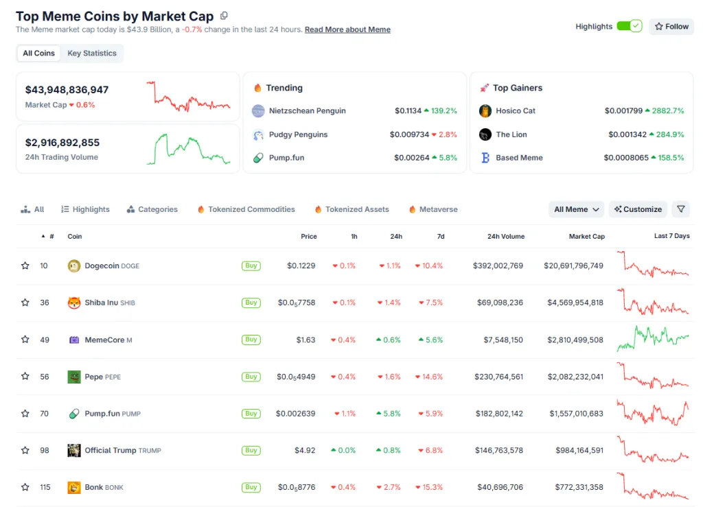 Рост PENGUIN произошел на фоне стагнации всего остального сегмента «смешных монет». Согласно CoinGecko, капитализация направления за прошедшую неделю снизилась почти на 10% — до $43,9 млрд.
