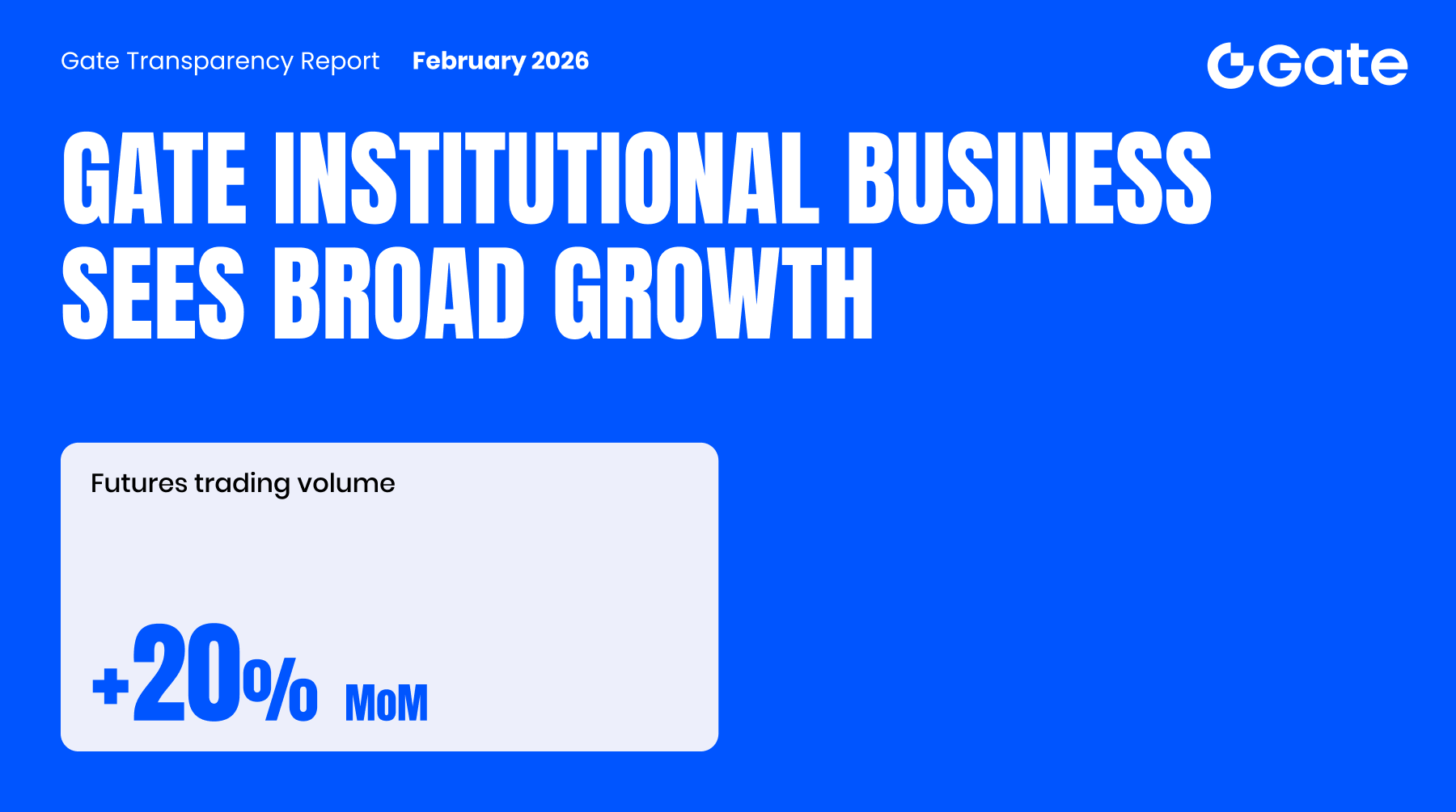 In February, despite market volatility and seasonal holiday effects, Gate’s institutional business maintained solid growth, with both spot and derivatives trading expanding in parallel. Institutional average daily futures trading volume increased by 20% month-over-month, reflecting continued growth in trading activity. At the same time, the platform continued to strengthen its institutional-grade infrastructure, including upgrades to the CrossEx cross-exchange trading system, the third-party custody network, and its API architecture. CrossEx now supports trading pairs across major exchanges and is gradually expanding into European and North American markets, enabling institutions to capture cross-market liquidity opportunities with higher capital efficiency and competitive fee structures. Meanwhile, Gate is accelerating the rollout of its 3.0 core infrastructure upgrade and deepening cooperation with multiple custody providers to enhance asset security and settlement systems. On the institutional services side, the platform has introduced customized policies such as market maker whitelists and interest-free lending, while continuing to strengthen connections with global market makers, asset managers, and custodians through initiatives such as the Institutional Circle program.