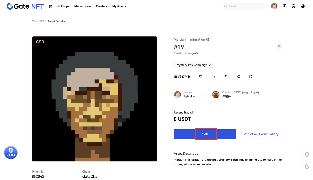 NFT'lerinizi Gate NFT'de sabit bir fiyattan veya bir açık artırma yoluyla satabilirsiniz ve fiyatı ödemek için çeşitli para birimleri desteklenir.