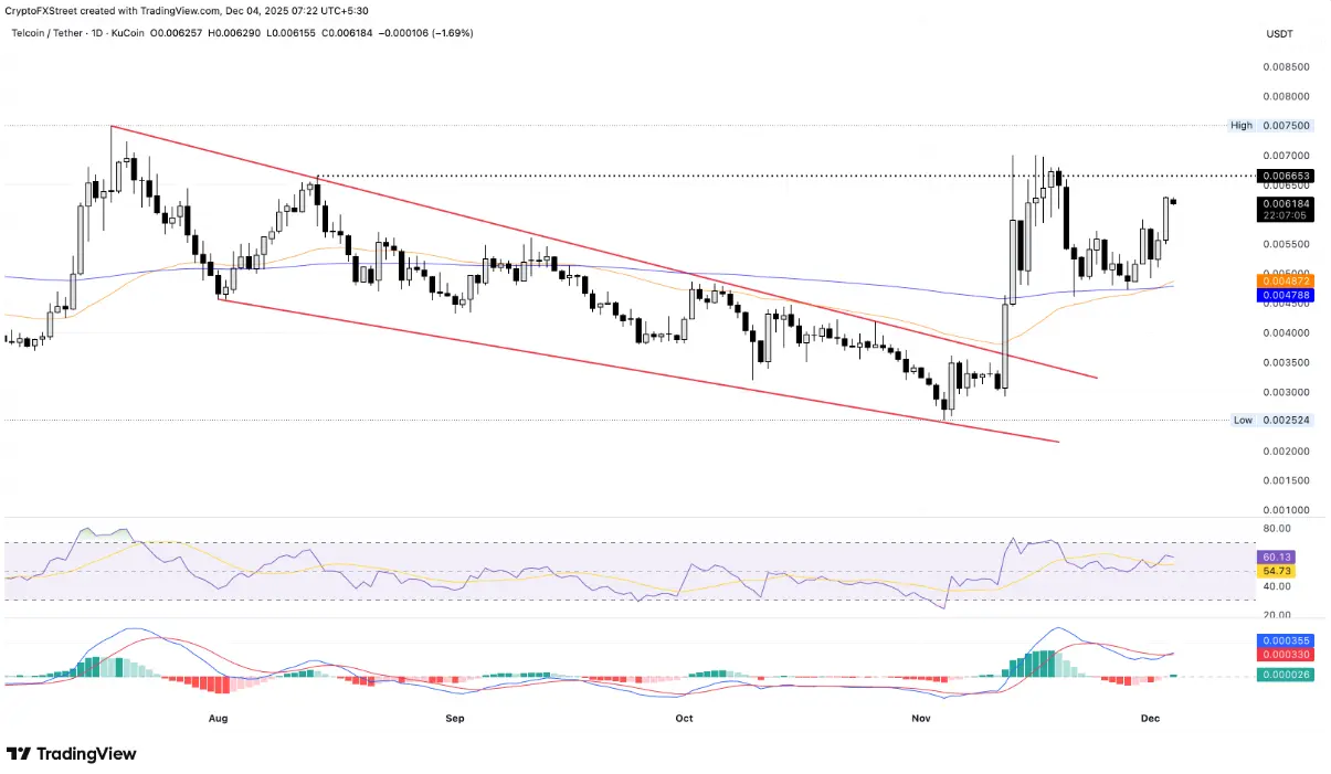 TEL/USDT daily chart | Source: TradingViewTechnical indicators also support this outlook: a bullish MACD crossover signals increasing buying strength, while the RSI remains around 60, underscoring the ongoing uptrend.