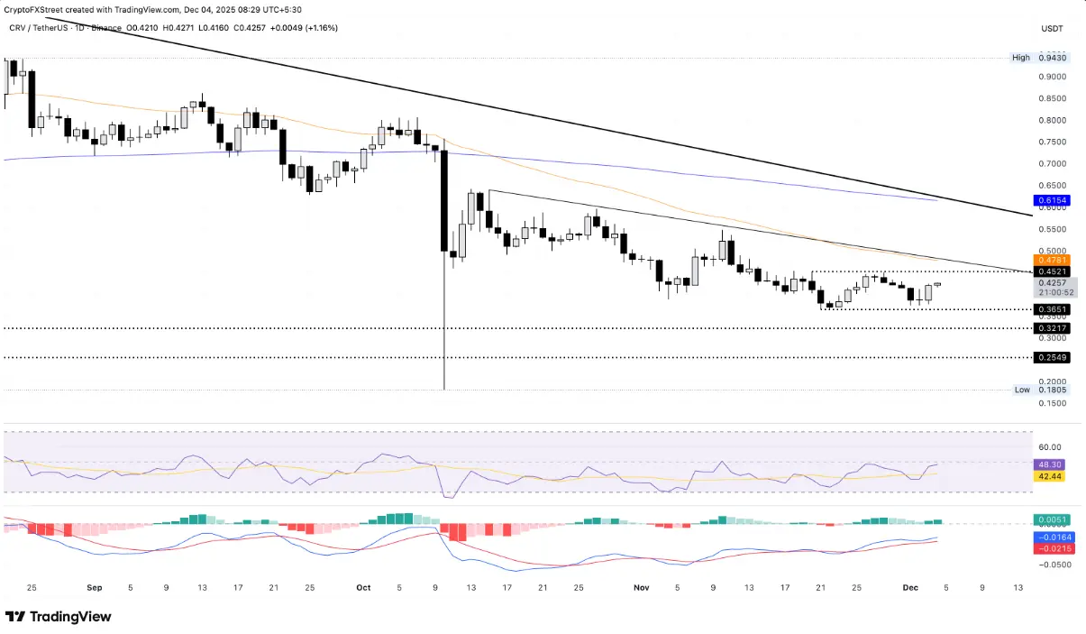 Conversely, CRV’s key support remains the November 21 low at $0.3651, acting as a major anchor for any price corrections.