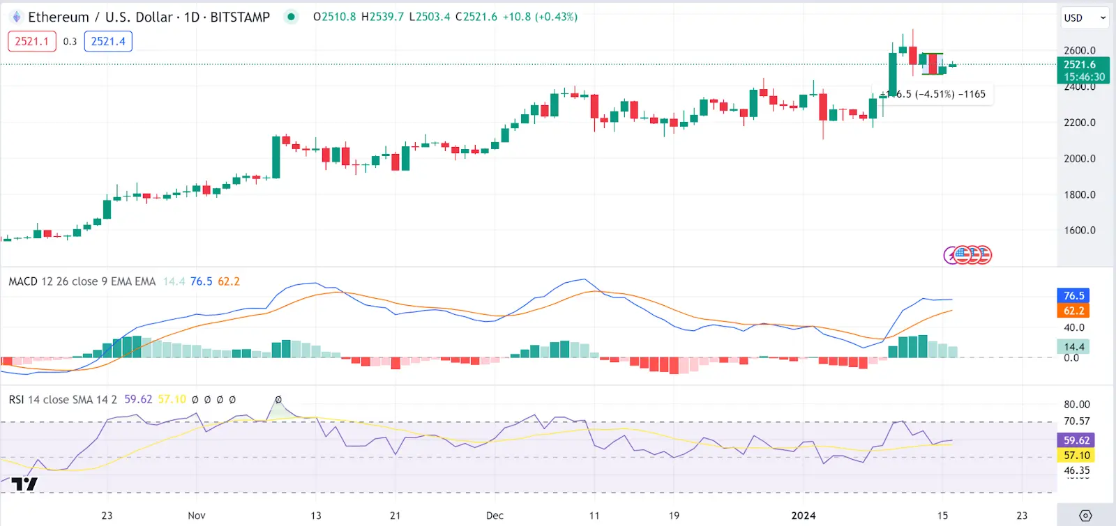 An in-depth analysis of the ETH/USD charts also shows uncertainty on ETH, as bulls and bears still struggle for dominance. This is shown by the Relative Strength Index indicator, which is currently on a northern trajectory as it approaches the overbought region, showing bull pressure on the Ethereum price. On the other hand, the MACD indicator is reverting toward the red zone, showing bearish prospects for ETH as well.