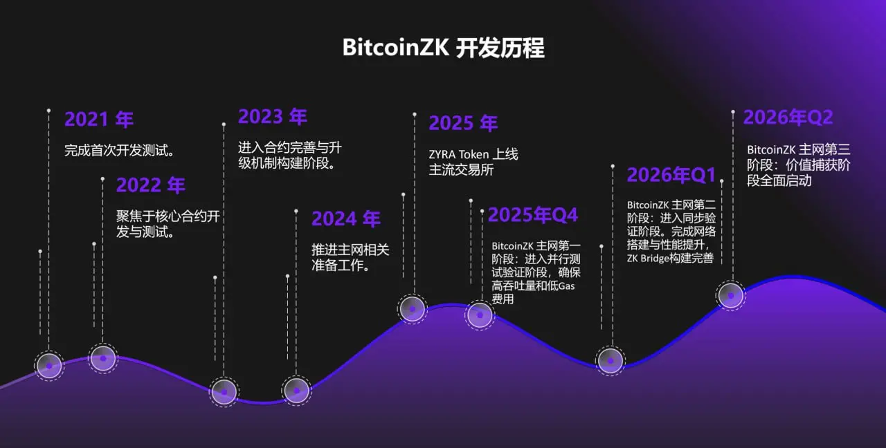According to the roadmap, the first phase of the BitcoinZK mainnet is scheduled to launch in 2025, with the ZYRA token also listing on major exchanges at that time.