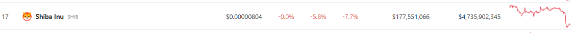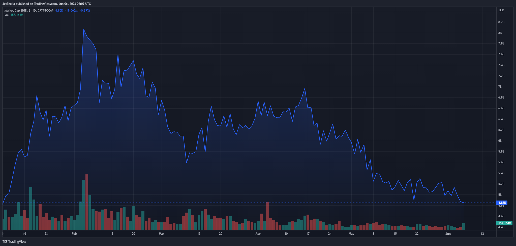 SHIB market cap drops below the $5 billion level. Chart: TradingView.com