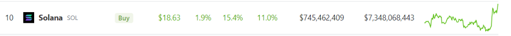 SOL up 15.4% in the last 24 hours. Source: Coingecko