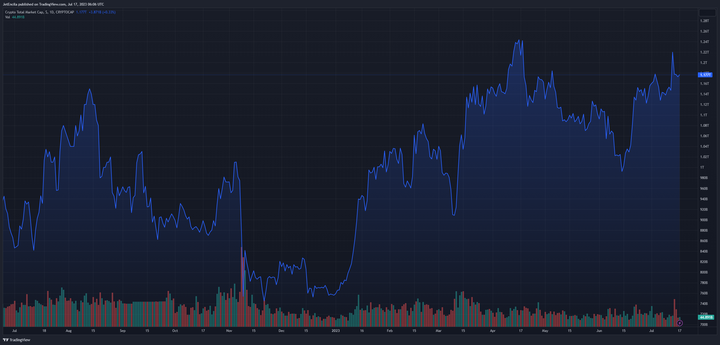 Total market cap of cryptocurrencies as of today stood at $1.17 trillion. Chart: TradingView.com