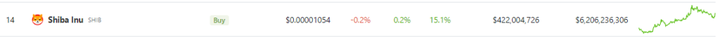 Shiba Inu is currently trading at $0.00001052. Chart: TradingView.com