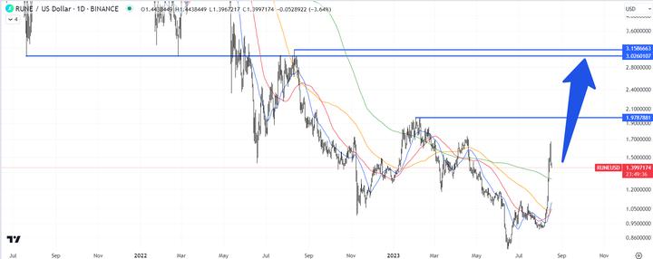 However, RUNE remains in a strong uptrend, having rallied 55% in just the last 10 days and broken convincingly to the north of all of its major moving averages in the process.