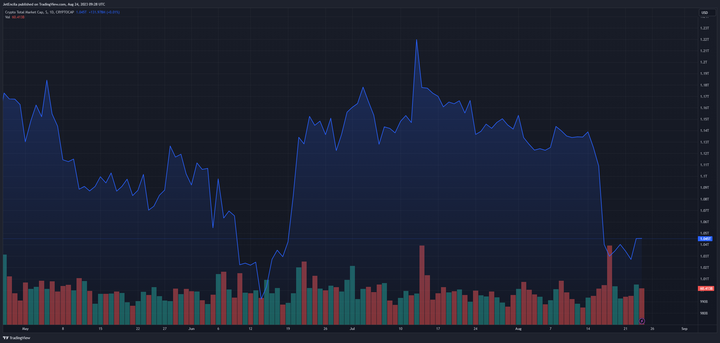 Cryptocurrencies market cap barely unchanged at $1.04 trillion today: TradingView.com
