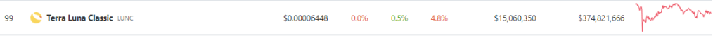 The LUNC price on CoinGecko currently stands at $0.00006448, reflecting a 0.5% increase in the past 24 hours. Additionally, over the course of the past seven days, the LUNC price has experienced a decline of 4.8%.
