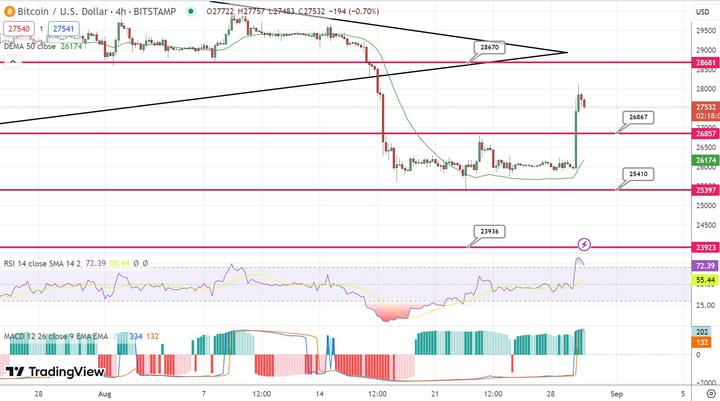 Upon analyzing the technical aspects of Bitcoin on a daily basis, it is evident that Bitcoin has broken out of its previous sideways trading band