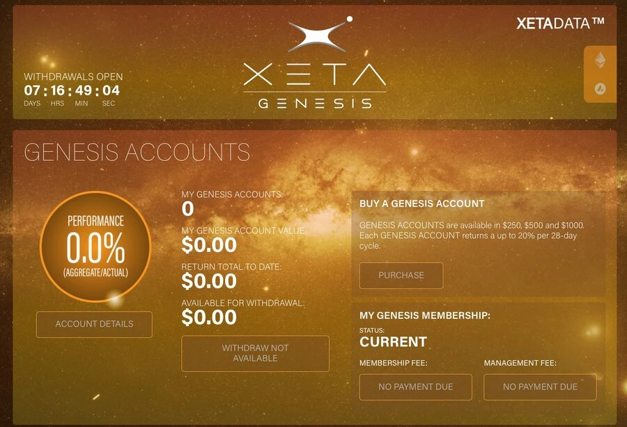 While the project has evolved through several phases, including a phase involving its XETA token, it has now standardized its investment and withdrawal processes.