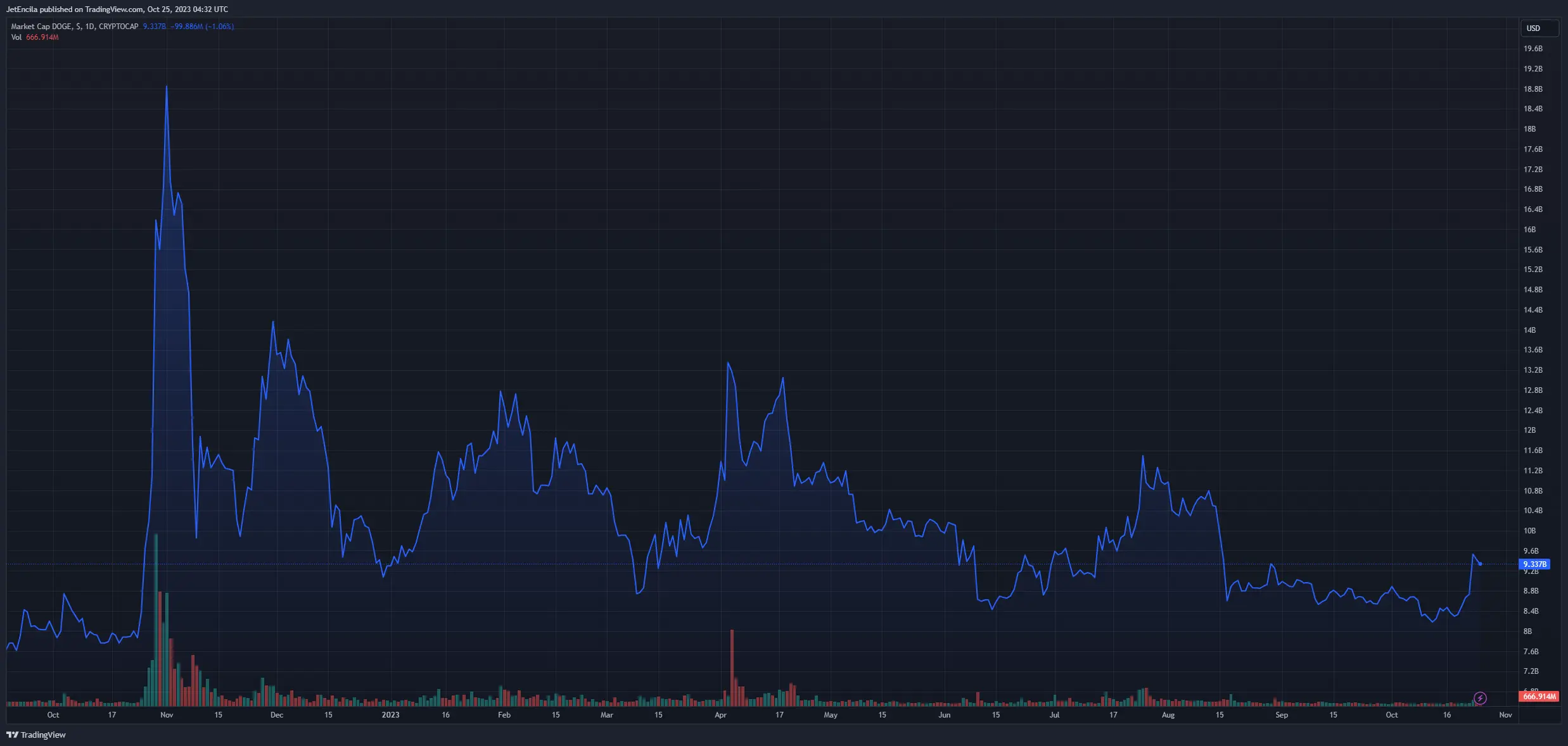 DOGE market cap currently at $9.3 billion. Chart: TradingView.com