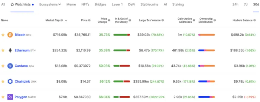 According to IntoTheBlock, an on-chain analytics company, institutional and whale demand for the cryptocurrency space has significantly increased. In this sense, during the past 30 days, the amount of transactions involving over $100,000 has increased by 3,800% according to Polygon, an Ethereum scaling solution.