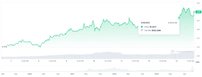 At the time of writing, MATIC was trading at $0.88, up 8.5% in the last 24 hours, and tallied an impressive 27% rally in the last seven days, data from CoinMarketCap shows.