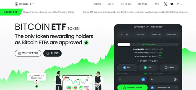 Another meme coin leveraging the prominent Bitcoin ETF craze is Bitcoin ETF Token. The project blends several ETF-focused utilities, enabling users to generate rewards without gambling, unlike with ETF The Token.