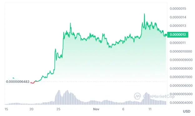 That said, the project currently holds a significantly lower market cap, at $482 million, while Dogecoin is at $10 billion and Shiba Inu is at $4.8 billion.