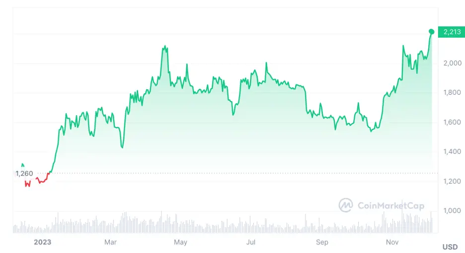 The last factor hinting at significant upside potential for Ethereum is the Ethereum ETF narrative. BlackRock applied for an Ethereum ETF in November, helping spike the asset’s price.