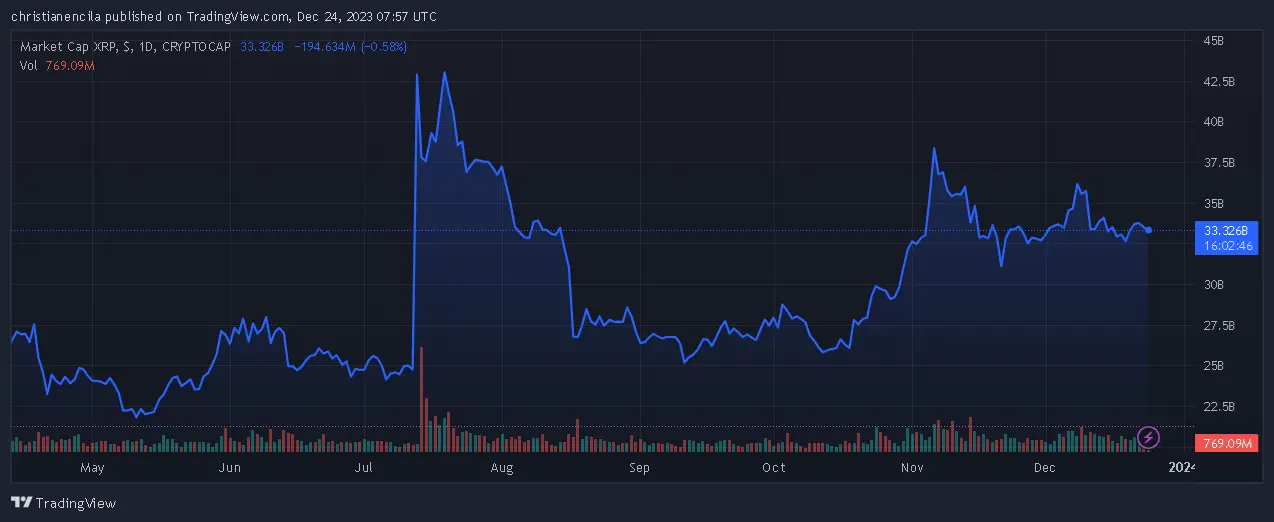 XRP market cap currently at $33.347 billion. Chart: TradingView.com