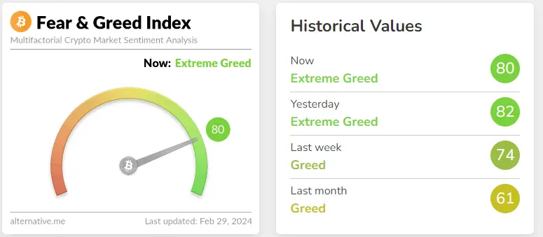 Fear and Greed Index on 29 Feb 2024Finally, the successful completion of patterns is not a guarantee of price movement. Other factors impact the prices such as news, regulations, technology, unexpected failures, and breakdowns, to name a few.