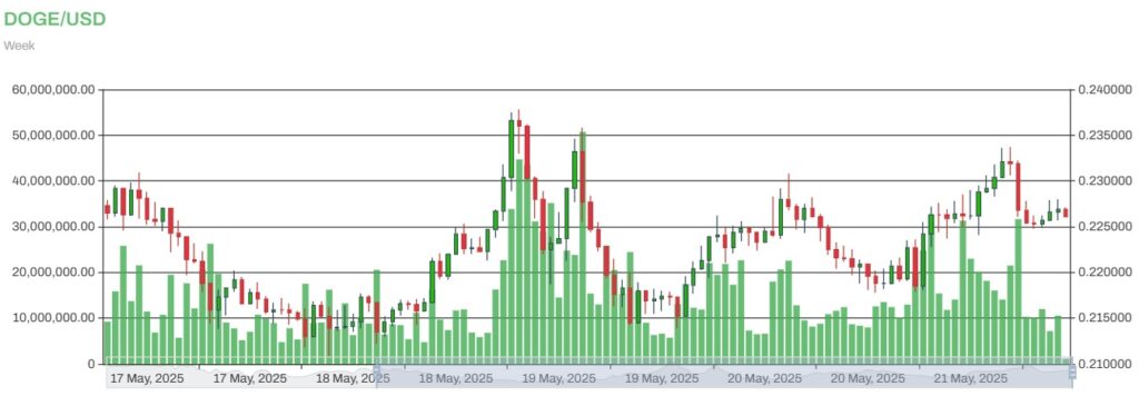 Dogecoin vẫn giảm khoảng 69% so với mức cao nhất mọi thời đại là $0.7376 cách đây bốn năm. Tuy nhiên, phân tích kỹ thuật của Bitcoinsensus gợi ý về khả năng giá DOGE sẽ tăng gấp đôi trong vòng một tuần.