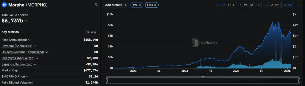 Morpho đứng thứ bảy về khối lượng tài sản bị khóa trong các giao thức DeFi với số liệu $6,7 tỷ.