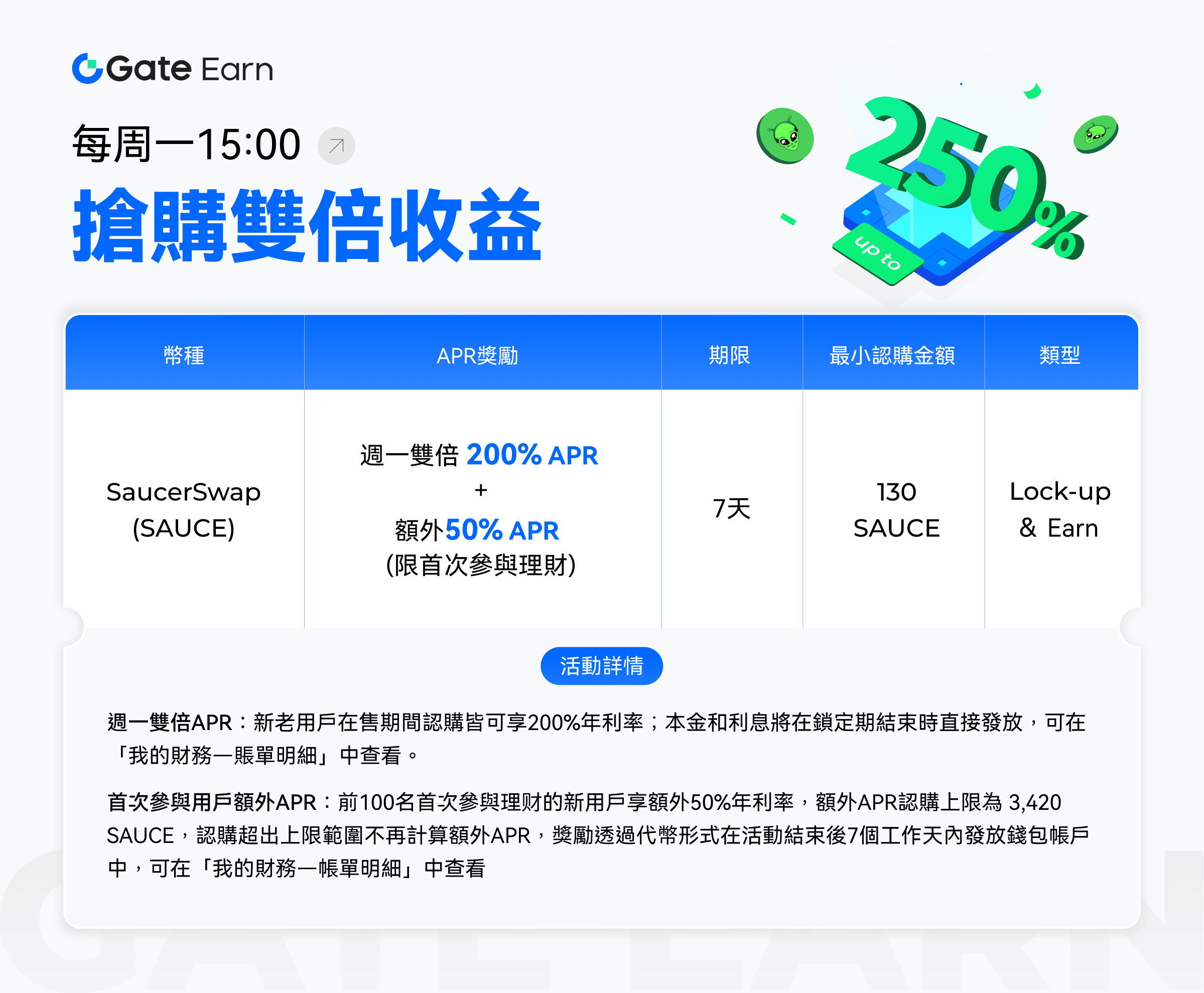 Gate Double Earning Monday:稳盈200%收益,首次参与可享250%年化