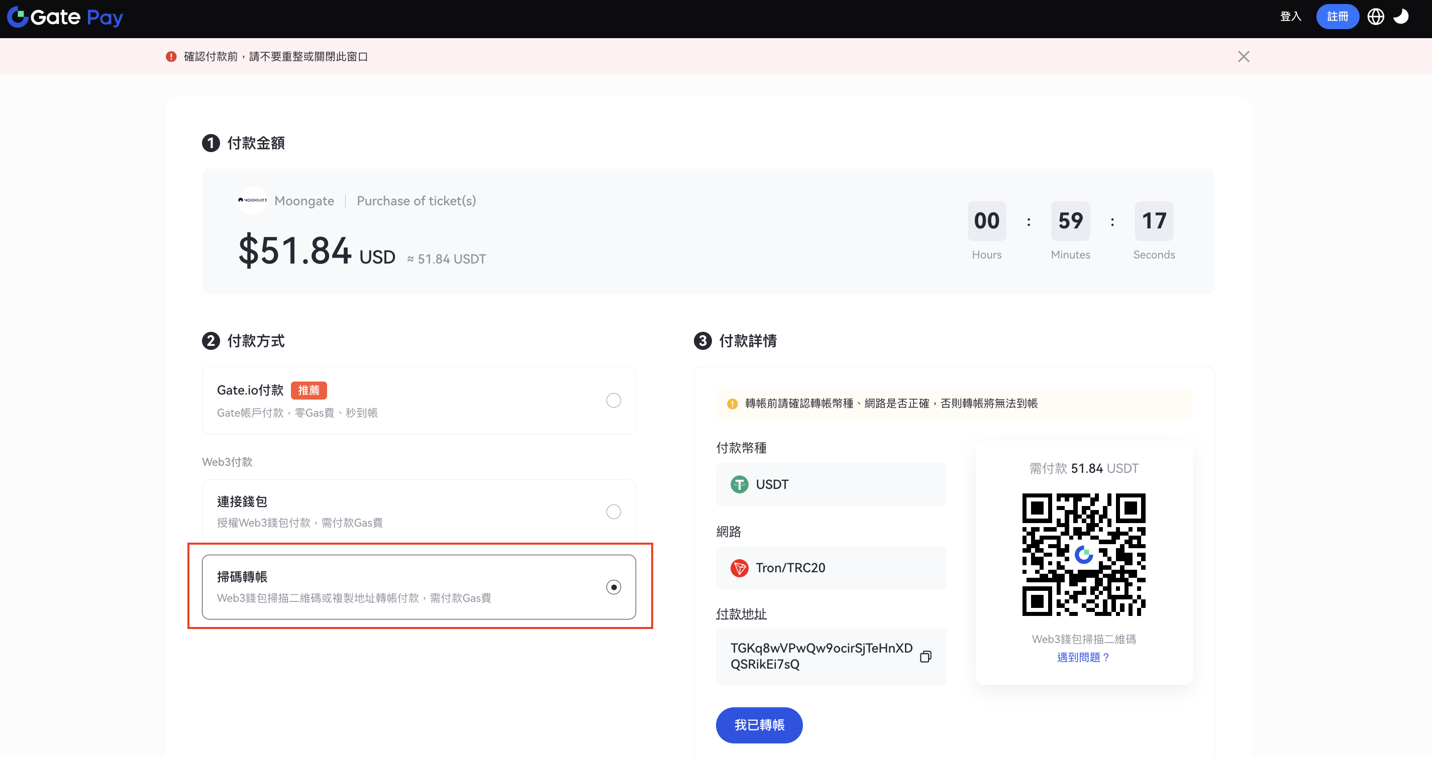 - 支付過程請勿退出結賬頁面,耐心等待鏈上確認交易,直到頁面顯示支付成功即可查詢訂單詳情;
